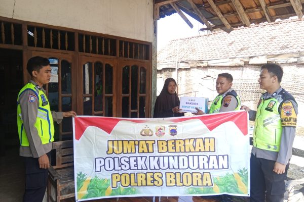 Blora – Polsek Kunduran melaksanakan kegiatan Jumat Berkah di Kelurahan Kunduran, Kecamatan Kunduran, Kabupaten Blora, Jumat, 17 April 2026. Kegiatan berlangsung pukul 08.30 WIB hingga 09.00 WIB sebagai bentuk kepedulian Polri terhadap warga yang membutuhkan. Kegiatan diikuti personel Polsek Kunduran, yaitu Aiptu Sulkan, Brigpol Eko Hery O., Brigpol Roni A., dan Briptu Ilham bersama warga…