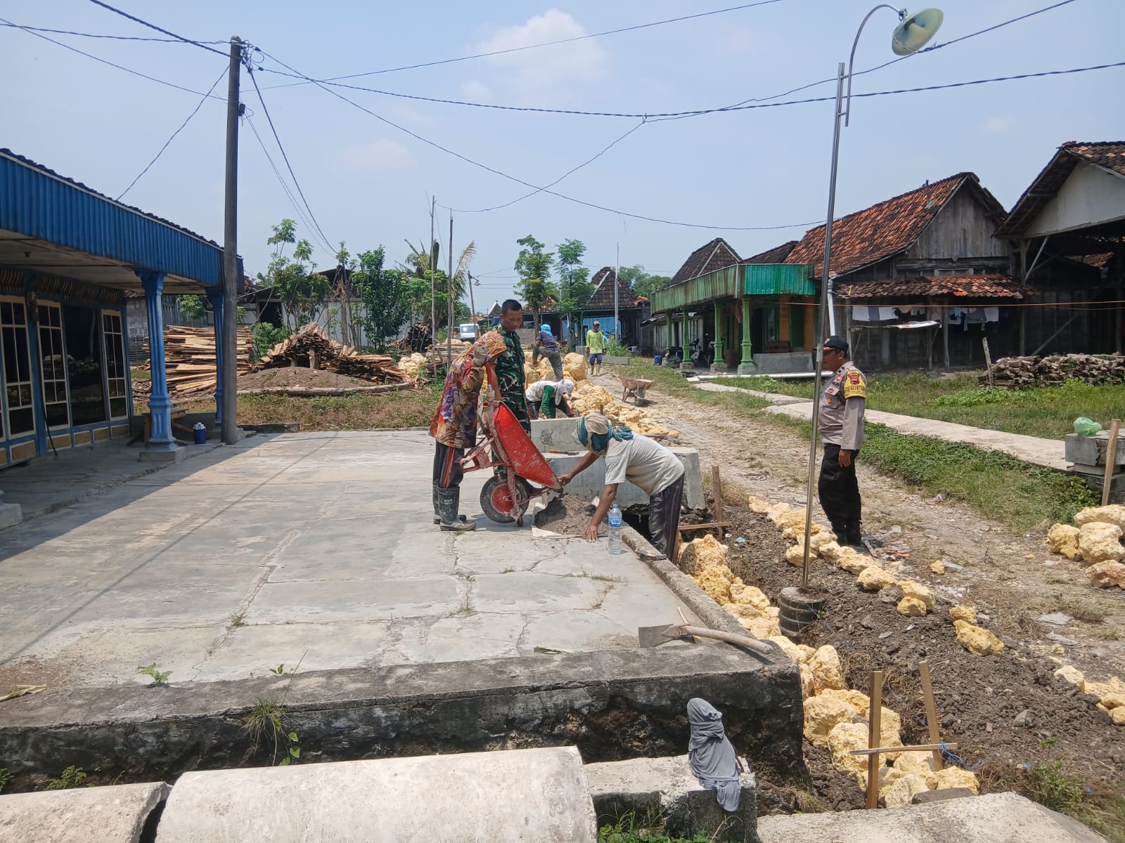 BLORA – Bhabinkamtibmas Polsek Kunduran dan Babinsa Koramil Kunduran bersinergi memantau langsung proyek pembangunan talud jalan di Desa Botoreco, Kecamatan Kunduran, Kabupaten Blora. Kegiatan ini dilakukan untuk memastikan pengerjaan proyek berjalan lancar dan kondusif, serta mengajak masyarakat menjaga kerukunan.