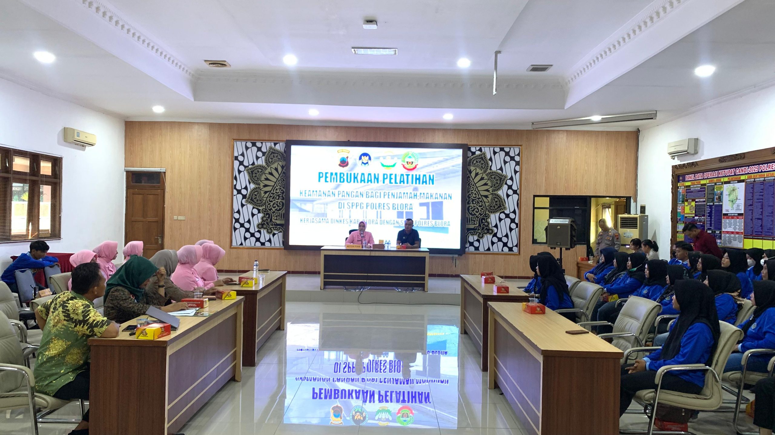 BLORA – Dinas Kesehatan (Dinkes) Kabupaten Blora bersama Yayasan Kemala Bhayangkari (YKB) Jawa Tengah Cabang Blora menandatangani Nota Kesepahaman (MoU) terkait Pengawasan Pangan Olahan Secara Terpadu di Sentra Pelayanan dan Pemberdayaan Gizi (SPPG) Polres Blora. Penandatanganan ini dilanjutkan dengan Pelatihan Keamanan Pangan bagi penjamah makanan di SPPG, bertempat di Aula Arya Guna Polres Blora, pada Kamis (25/9/2025) mulai pukul 09.50 WIB.