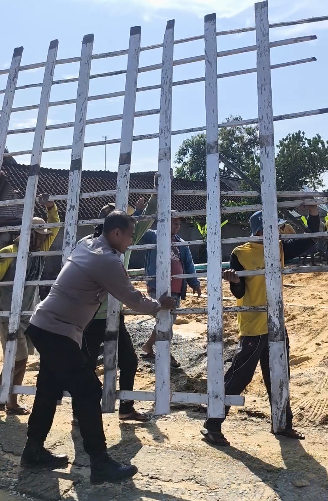 Bhabinkamtibmas desa Prantaan Polsek Bogorejo Polres Blora Polda Jawa Tengah Aipda Arip Nirwanto, SH bersama warga masyarakat mengikuti kegiatan tradisi Sambatan di desa Prantaan Kecamatan Bogorejo Kabupaten Blora Jawa Tengah.