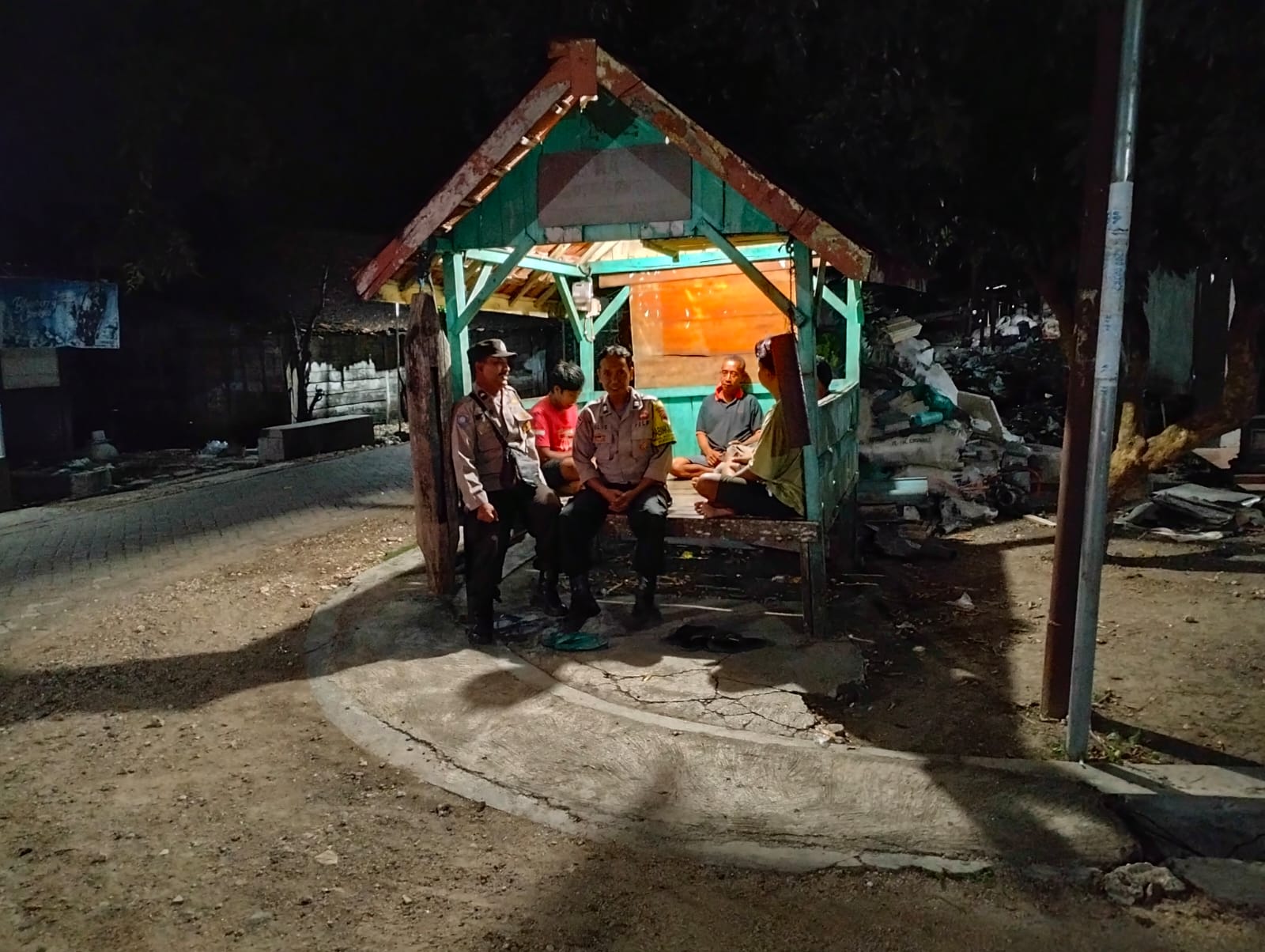 Dua personel Bhabinkamtibmas, AIPTU Sulistiono (Bhabinkamtibmas Ds. Nglobo) dan AIPDA Nyamat (Bhabinkamtibmas Bangowan), hadir untuk bersilaturahmi dan mempererat hubungan antara Polri dengan anggota Satkamling serta tokoh agama dan tokoh masyarakat setempat.