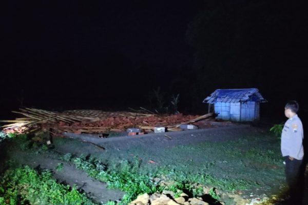 Respons Cepat Laporan 110, Polsek Tunjungan Sigap Tangani Rumah Roboh Akibat Angin Kencang