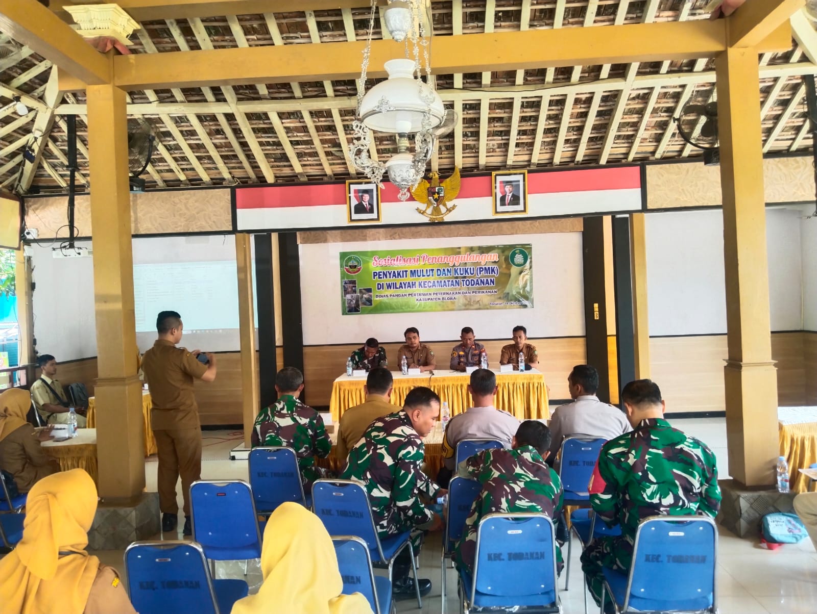 BLORA – Pemerintah Kecamatan Todanan, Blora, bersama unsur Forum Komunikasi Pimpinan Kecamatan (Forkompimcam) dan Dinas terkait, menggelar Sosialisasi Penanganan Penyakit Mulut dan Kuku (PMK) pada Selasa (14/10/2025). Kegiatan ini dilaksanakan di Pendopo Kecamatan Todanan, Kabupaten Blora, mulai pukul 10.00 WIB.