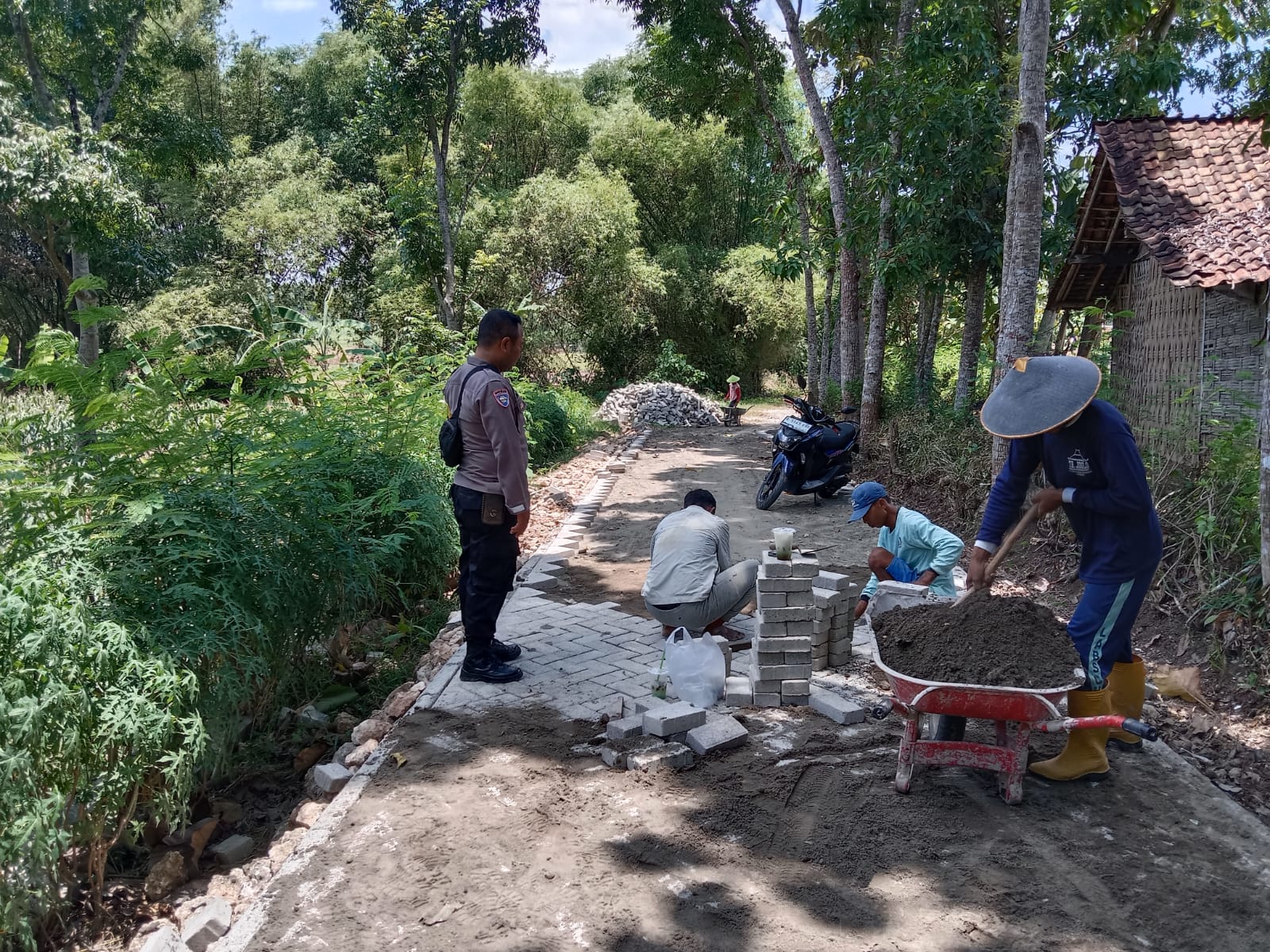Pastikan Pembangunan Tepat Sasaran, Bhabinkamtibmas Ngawen Kawal Proyek Jalan Desa Bradag