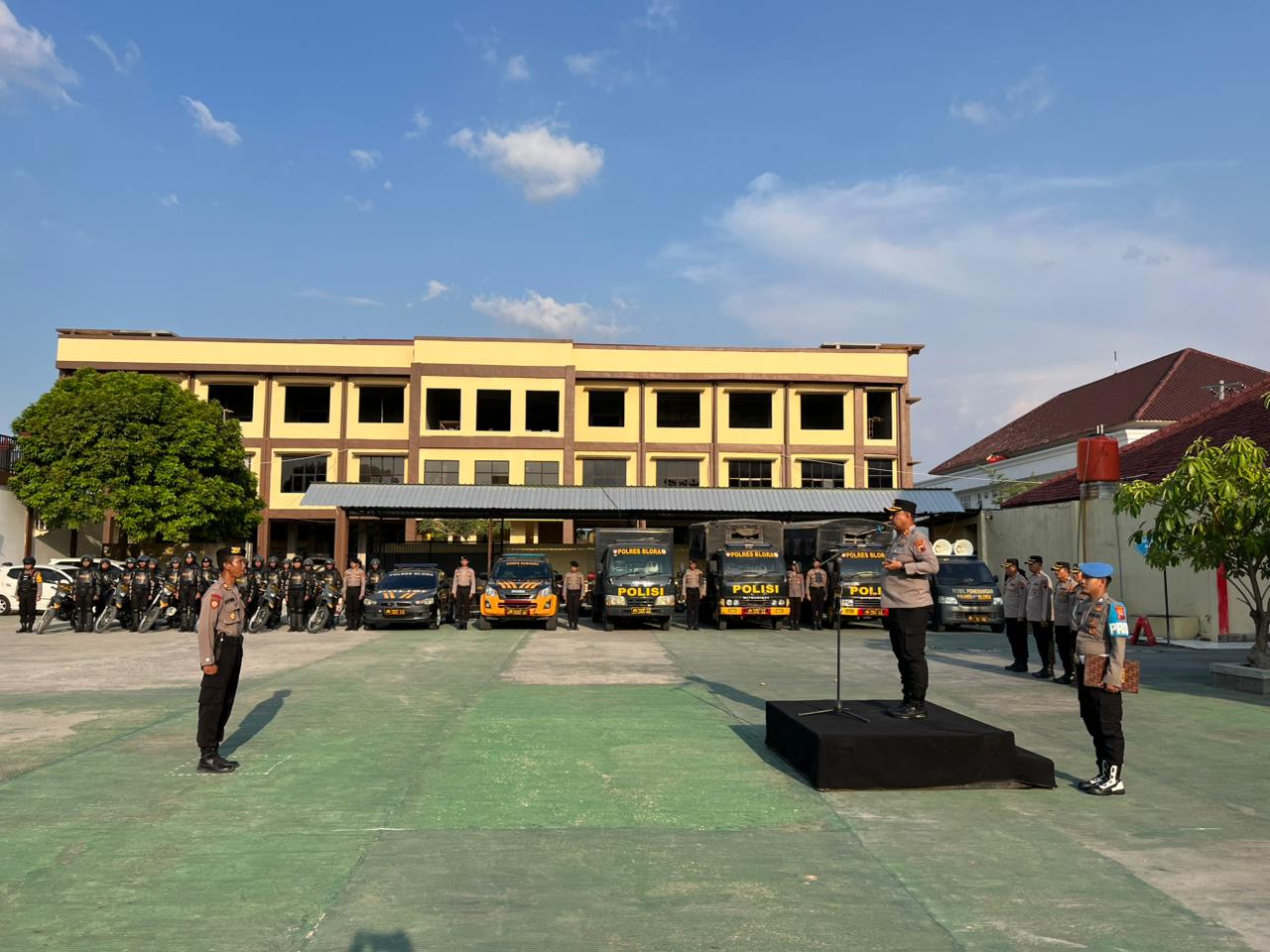 Apel siaga dipimpin langsung oleh Kapolres Blora AKBP Wawan Andi Susanto, S.H., S.I.K., M.H., dan diikuti oleh seluruh jajaran Pejabat Utama, Kompi Dalmas, Tim Negosiator, Tim Gakkum, serta pleton POH dan Raimas yang telah terseprint.