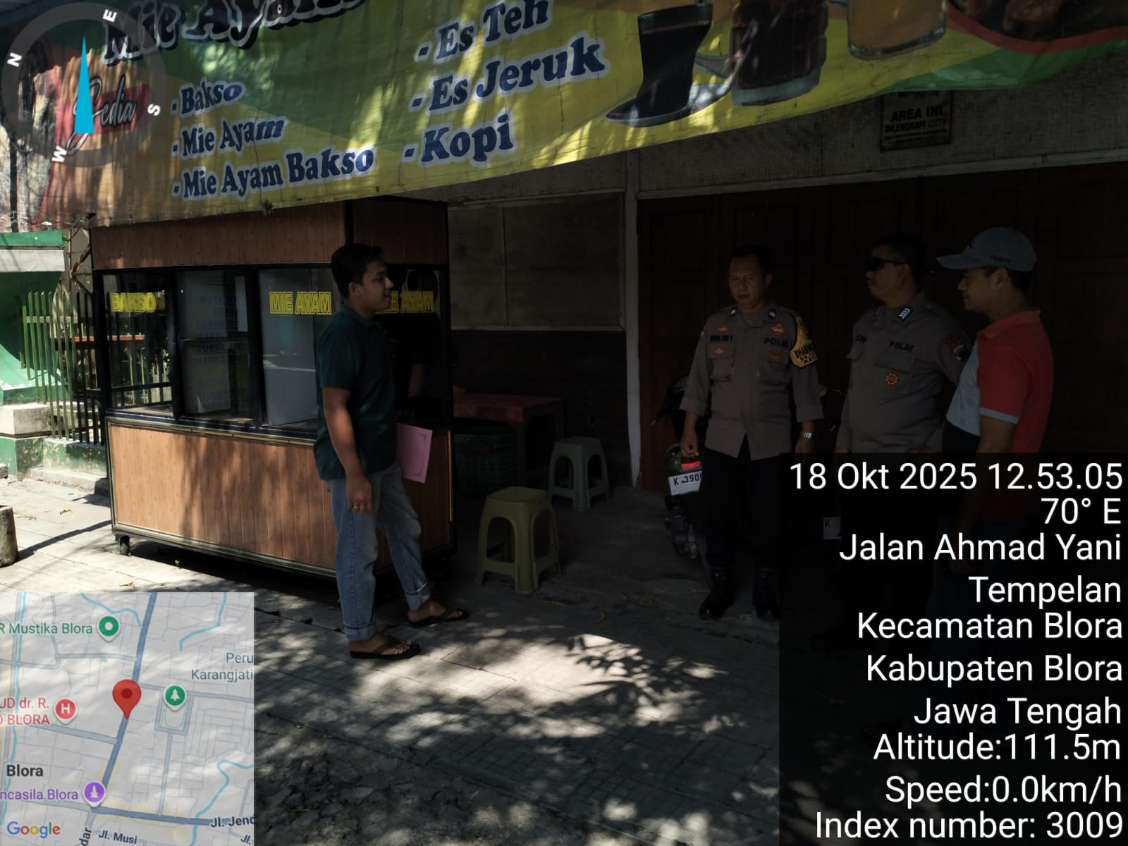Di mana: Tempat kejadian perkara (TKP) berada di depan ruko Perhutani No. 10, Jalan A. Yani, Kelurahan Tempelan, Kecamatan Blora, Kabupaten Blora.