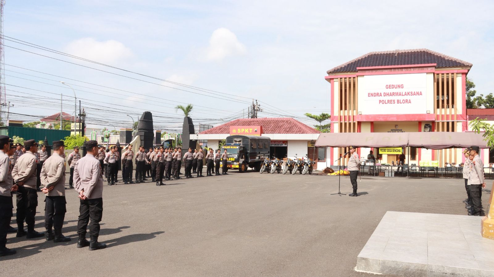 Apel yang dilaksanakan pukul 08.20 hingga 08.50 WIB ini dipimpin langsung oleh Kapolres Blora, AKBP Wawan Andi Susanto, S.H., S.I.K., M.H., dan diikuti oleh Waka Polres, PJU, Kasat, hingga seluruh Kapolsek jajaran, serta personel Sat Samapta dan Kanit Samapta Polsek.