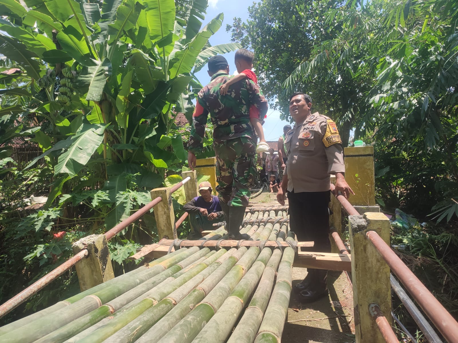 “Kami langsung turun tangan bersama TNI dan warga untuk memastikan akses mereka kembali normal meskipun sifatnya masih darurat. Kami juga menghimbau warga untuk sementara tidak melintasi jembatan ini dengan kendaraan bermotor demi keselamatan. Selain itu, kami juga terus mengingatkan warga agar selalu waspada terhadap potensi gangguan Kamtibmas, termasuk pentingnya mengunci setang kendaraan untuk mencegah curanmor,” ujar AKP Gembong Widodo, S.H.