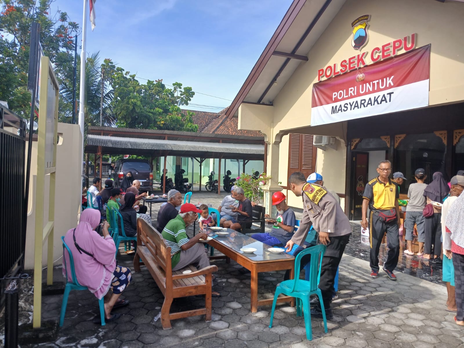 Kegiatan yang dimulai sejak pukul 07.00 WIB ini dihadiri langsung oleh Kapolsek Cepu, AKP Edi Santosa, S.H., M.H., didampingi oleh Kanit, Ketua Ranting Bhayangkari, serta seluruh anggota Polsek dan Bhayangkari. Suasana kekeluargaan terasa kental saat mereka sarapan bersama warga lingkungan Kecamatan Cepu.