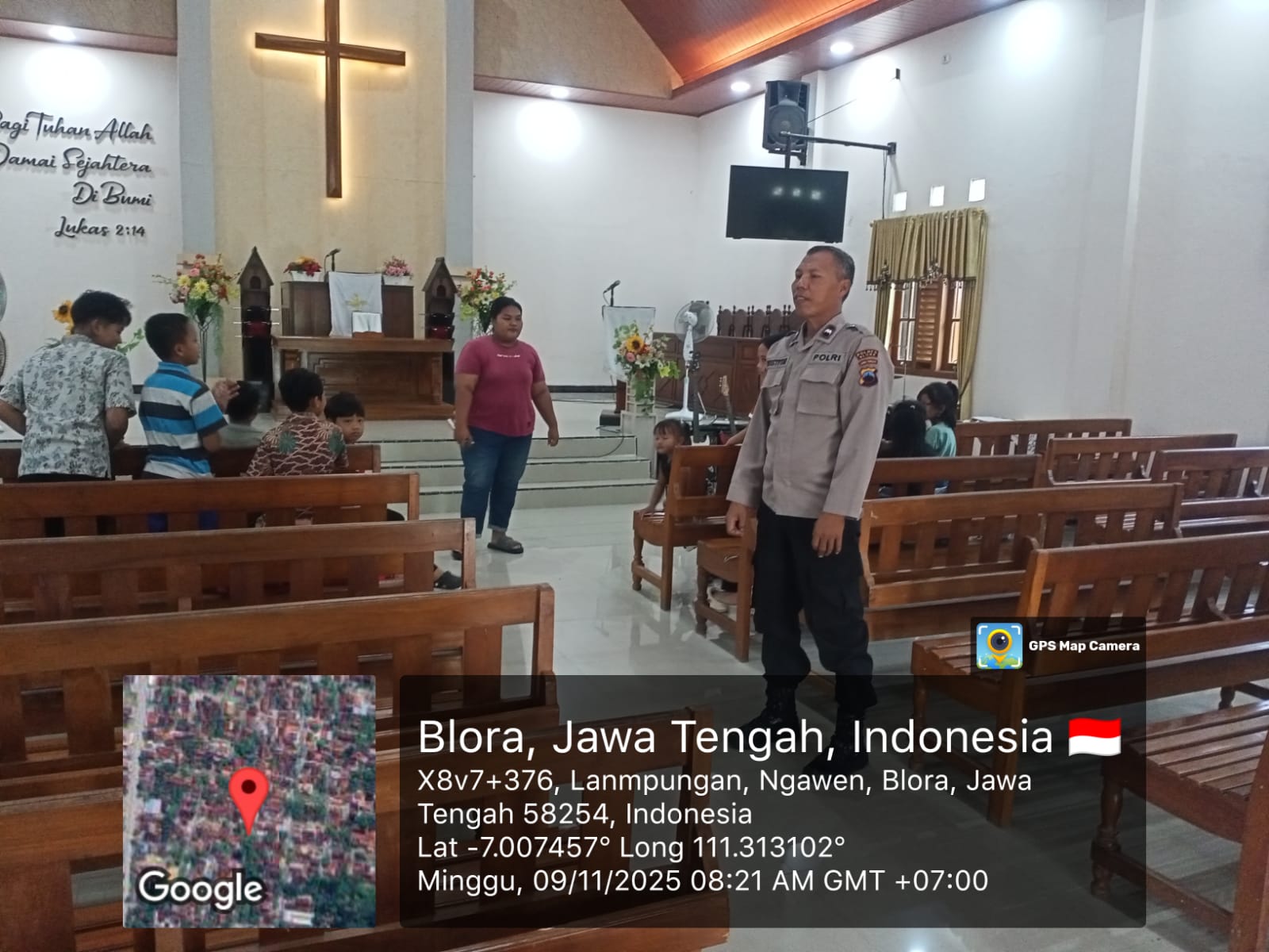 BLORA – Komitmen Polres Blora dalam menjaga kerukunan antarumat beragama diwujudkan melalui program rutin Minggu Kasih yang dilaksanakan oleh Polsek Ngawen. Pada Minggu pagi, 9 November 2025, personel Polsek Ngawen menyambangi Gereja GKJTU di Kecamatan Ngawen untuk bersilaturahmi dan menyampaikan pesan-pesan keamanan dan ketertiban masyarakat (kamtibmas).