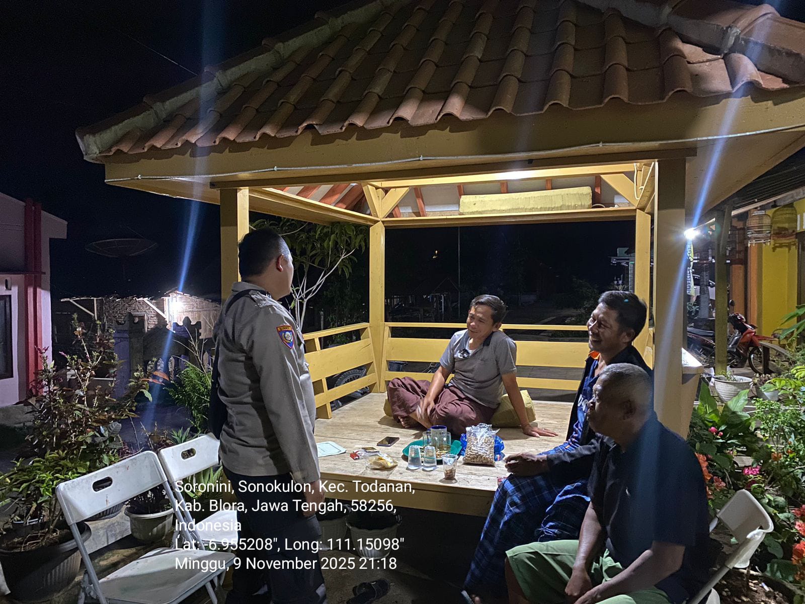Kegiatan sambang ini dilaksanakan di Pos Kamling Dukuh Soronini, Desa Sonokulon, Kecamatan Todanan, dihadiri oleh sejumlah awak Satkamling dan tokoh masyarakat setempat.