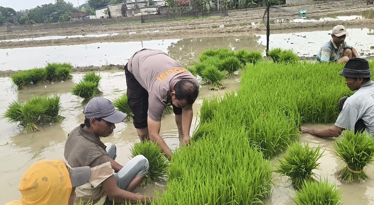 Kegiatan yang menunjukkan sinergi dan kemitraan erat antara Polri dan masyarakat petani ini berlangsung pada hari Selasa (2/12/2025), dimulai pukul 08.30 WIB. Kanit Binmas Polsek Bogorejo Aiptu Pujiranto dan Bhabinkamtibmas Desa Prantaan Aipda Arip Nirwanto, S.H., tak canggung “nyemplung” ke sawah, membantu para petani yang sedang mempersiapkan bibit untuk ditanam.