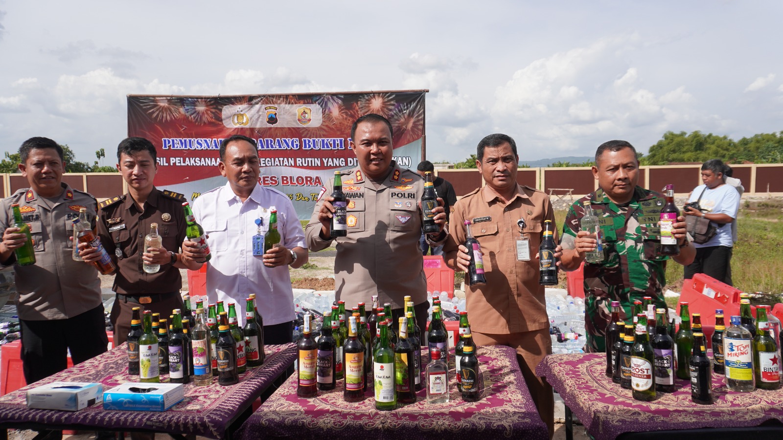 Berdasarkan data yang dihimpun, sebanyak 1.628 botol miras berbagai merek dan jenis dimusnahkan dengan cara digilas menggunakan alat berat. Pemusnahan ini disaksikan langsung oleh jajaran Forkopimda Kabupaten Blora, tokoh masyarakat, serta perwakilan dari instansi terkait.