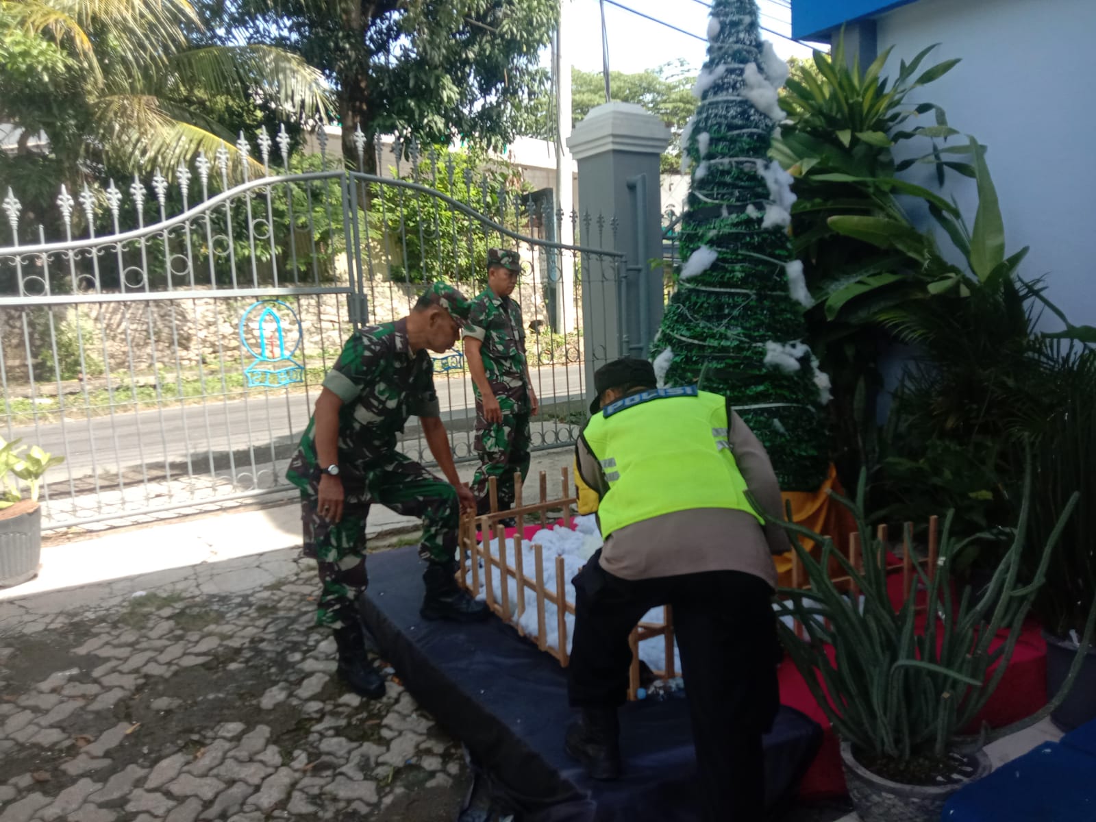 BLORA – Aparat gabungan dari Polsek Banjarejo, Koramil Banjarejo, dan Satpol PP bersinergi melakukan pengamanan ketat dalam perayaan Natal di Gereja Kristen Jawa Tengah Utara (GKJTU) Pepanthan, Desa Mojowetan, Kecamatan Banjarejo, Minggu (28/12/2025) siang. Pengamanan ini dilakukan secara menyeluruh guna memastikan ibadah berjalan dengan khidmat dan aman.