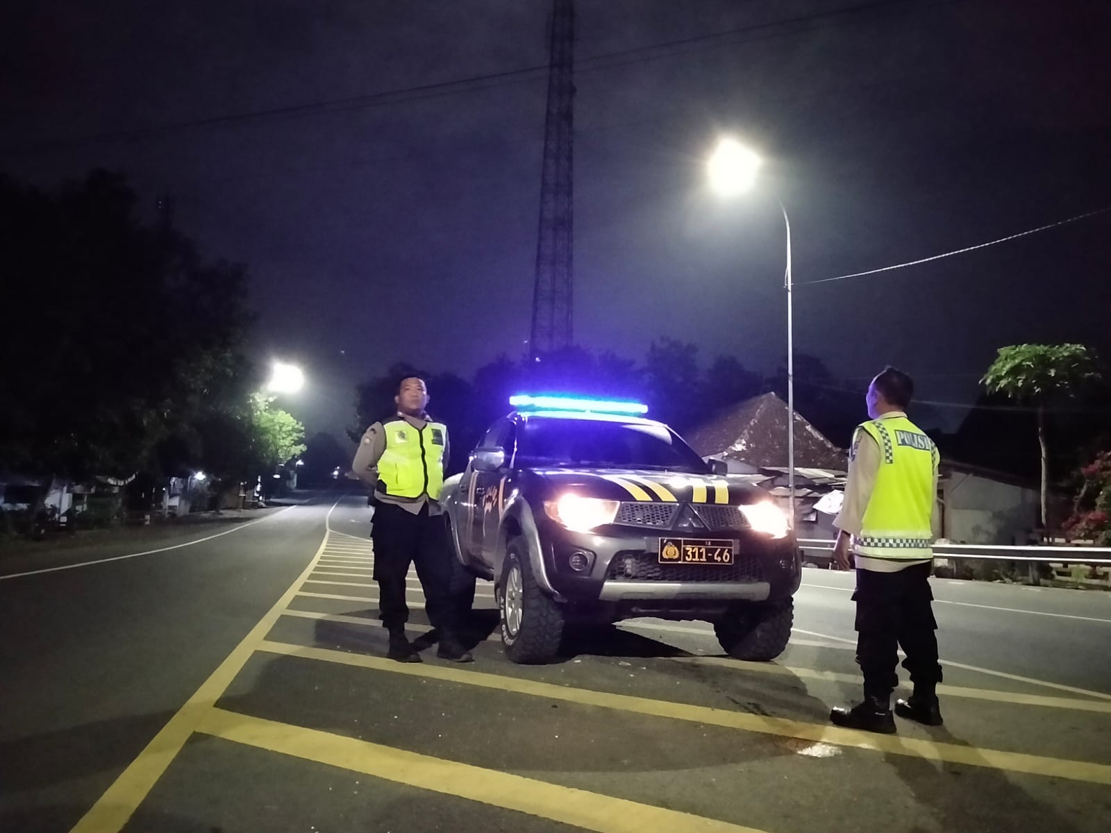 Dengan menggunakan mobil dinas Strada, tiga personel Polsek Sambong yang dipimpin oleh Aipda Agus P menyisir sejumlah titik strategis, mulai dari perbankan hingga area pemukiman dan perbatasan wilayah.