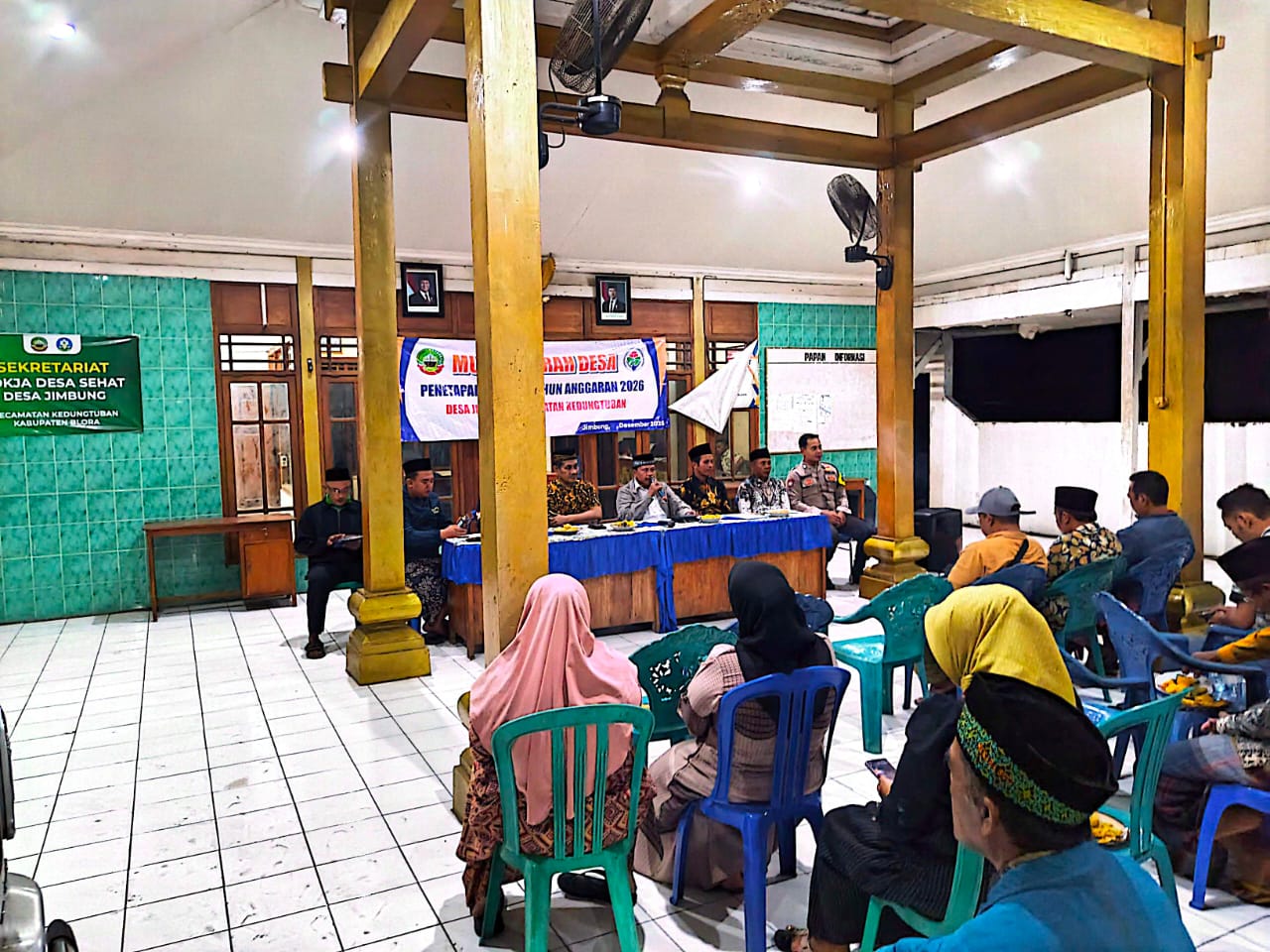 Kegiatan yang dimulai pukul 19.30 WIB ini dihadiri oleh jajaran Sekcam Kedungtuban, Kepala Desa Jimbung Bapak Pasrah, Ketua BPD Bapak Mundakir, pendamping kecamatan, tokoh agama, tokoh masyarakat, serta perwakilan warga setempat.