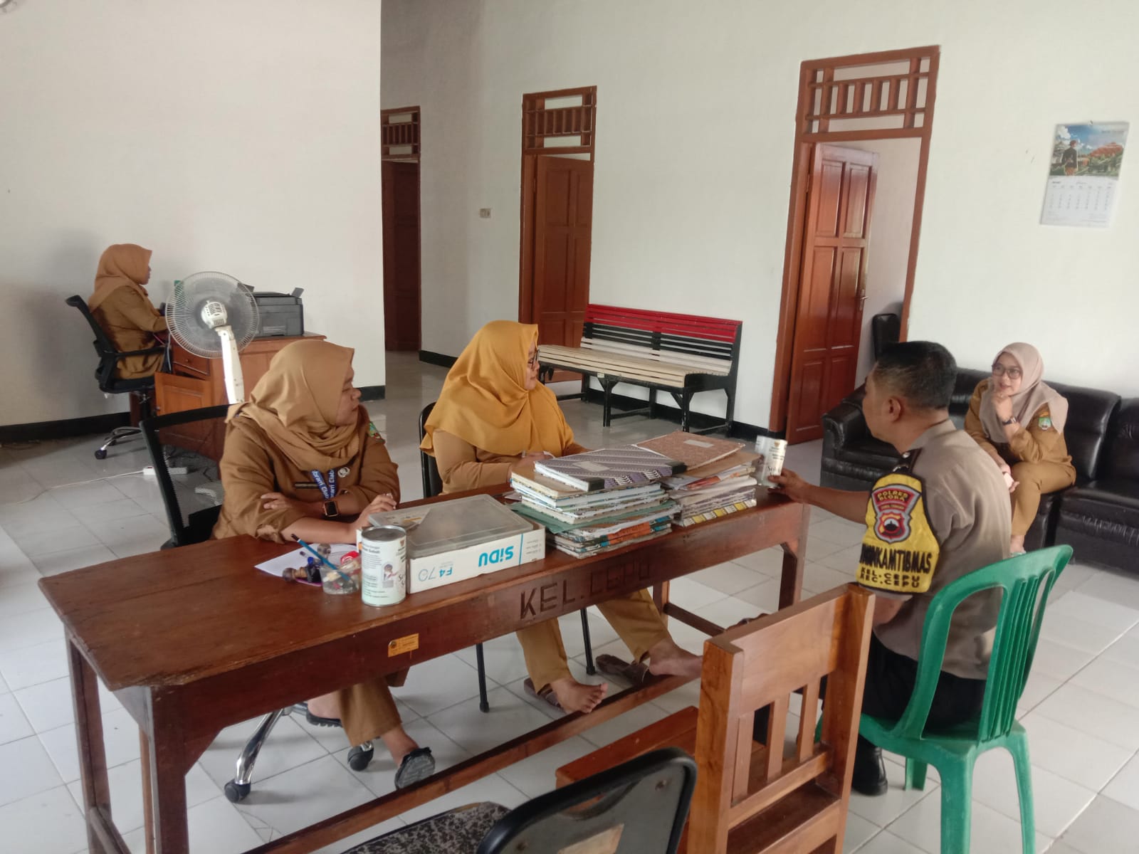 Tak hanya di lingkungan pendidikan, Aipda M. Arifin juga menyambangi kantor Kelurahan Cepu untuk berkoordinasi dengan kepala kelurahan beserta perangkatnya. Fokus pembahasan meliputi perkembangan situasi Kamtibmas terkini serta langkah mitigasi bencana terkait infrastruktur.
