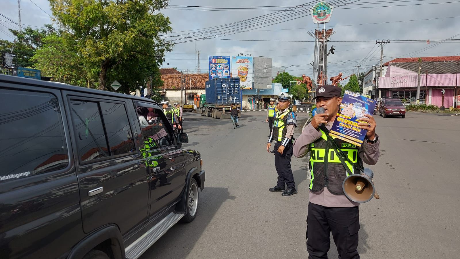 Kegiatan tersebut dipimpin langsung oleh Kasatlantas Polres Blora selaku Kasatgas Gakkum Ops Keselamatan Candi 2026. Dalam pelaksanaannya, petugas menghentikan sejumlah pengendara secara humanis untuk memberikan imbauan terkait pentingnya penggunaan helm standar SNI, pemakaian sabuk keselamatan, serta larangan penggunaan knalpot yang tidak sesuai spesifikasi teknis.