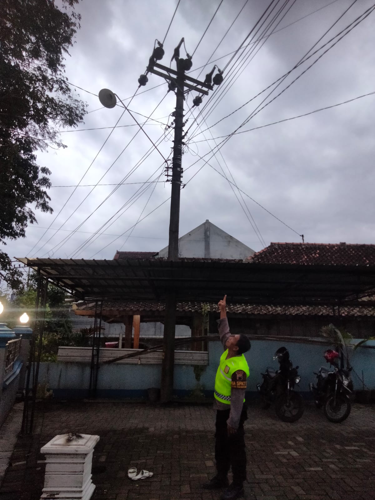 “Awalnya dua orang karyawan berusaha menaikkan tiang bendera tersebut. Kemudian dua orang lainnya datang membantu karena tiang pipa besi itu cukup berat. Namun, saat proses menaikkan, tiang tersebut oleng dan menempel pada kabel PLN tegangan tinggi yang melintas di depan kantor,” terang Iptu Hadi Setyo.
