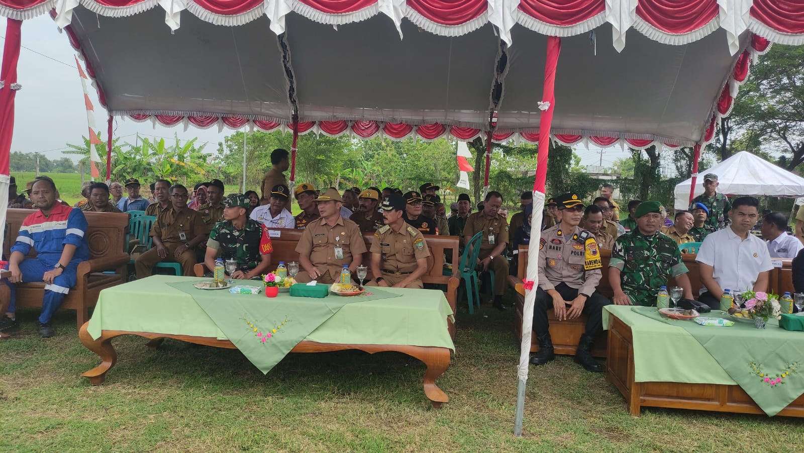 Bertindak sebagai Inspektur Upacara, Asisten I Bidang Pemerintahan dan Kesejahteraan Rakyat Sekretariat Daerah Blora, Agus Puji Mulyono, S.Sos, M.Si. Kegiatan ini dihadiri oleh jajaran Forkopimda, personel TNI dari Kodim 0721/Blora, personel Polres Blora, perangkat desa, tokoh masyarakat, hingga pelajar dari SMK Muhammadiyah dan SMA NU Kradenan.
