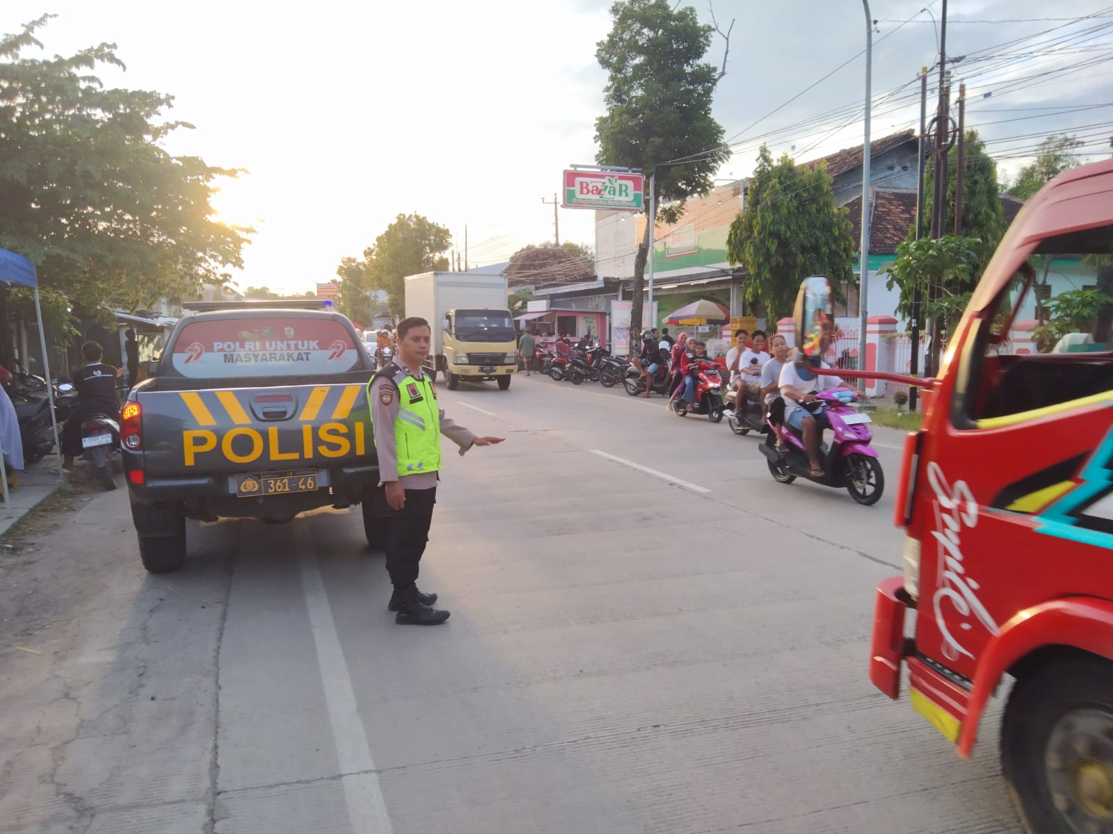 Patroli yang dimulai pukul 16.30 WIB ini dipimpin oleh Aiptu Agus R. bersama tiga personel lainnya. Para petugas menyisir area yang menjadi titik kumpul warga dan pedagang, sekaligus melakukan pengaturan arus lalu lintas untuk mengantisipasi kemacetan menjelang waktu berbuka puasa.