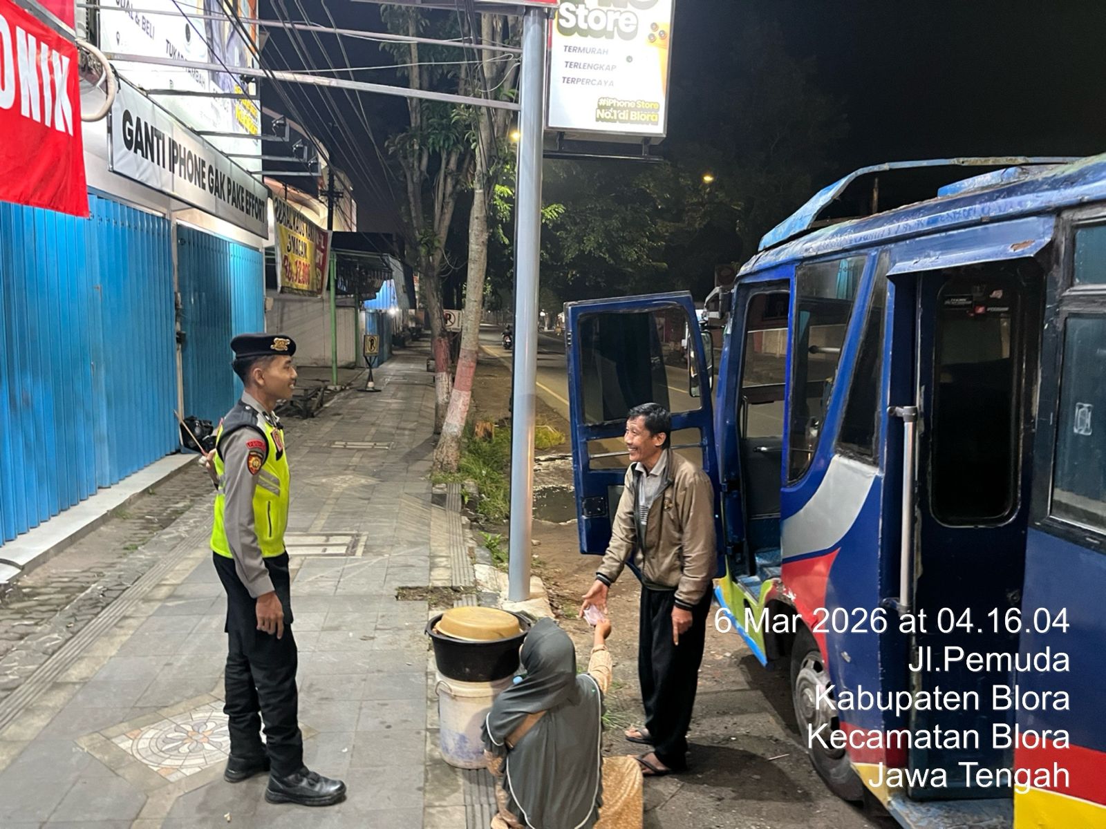 Kegiatan yang berlangsung pada Jumat (06/03/2026) ini menyasar area publik seperti Alun-Alun Blora, Tugu Pancasila, kawasan Kridosono, hingga sepanjang Jalan Pemuda. Patroli yang dilaksanakan oleh Briptu Alwan, Bripda Fatkha, dan Bripda Zacky ini bertujuan untuk mencegah gangguan kamtibmas, termasuk aksi balap liar dan tindak pidana 3C (Curas, Curat, Curanmor).
