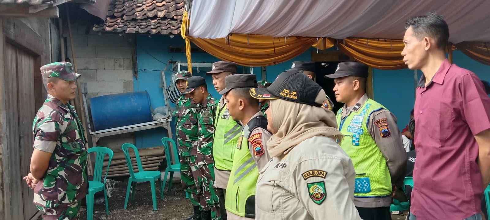*BLORA* – Personel gabungan dari TNI, Polri, dan instansi terkait memperketat pengamanan gelaran hiburan musik dangdut dalam rangka perayaan halal bihalal di Dukuh Karangtawang, Desa Tawangrejo, Kecamatan Tunjungan, Rabu (25/03/2026) siang.