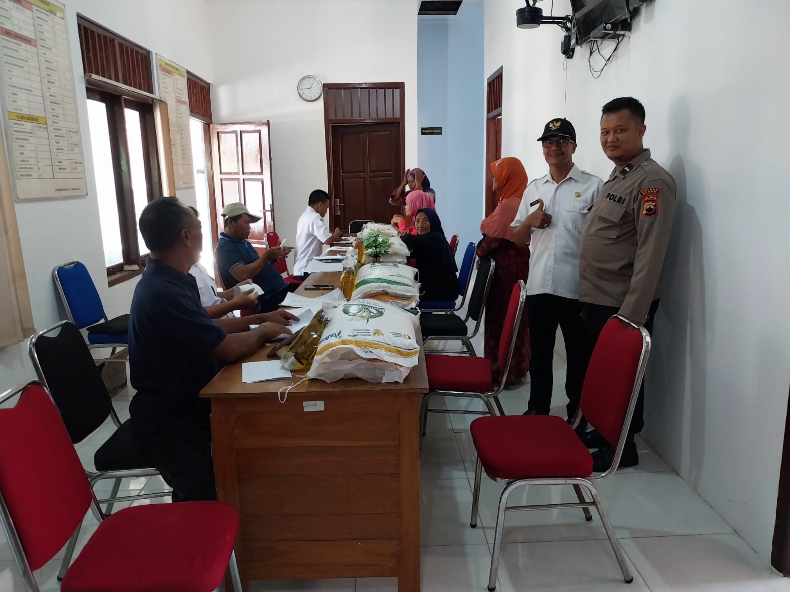 Hingga berakhirnya kegiatan, proses penyaluran bantuan pangan di Balai Desa Karang berjalan dengan aman, tertib, dan lancar.