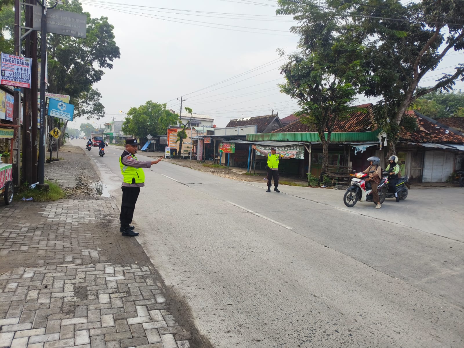 Kegiatan dilaksanakan empat personel Bhabinkamtibmas, yakni Aiptu Suwanto, Aipda Darsono, S.E., Bripka A. Bian S., dan Brigpol H. Patraliska, S.H. Kehadiran polisi berseragam dengan lampu rotator biru menyala bertujuan memberikan rasa aman bagi warga dan pemudik yang melintas.